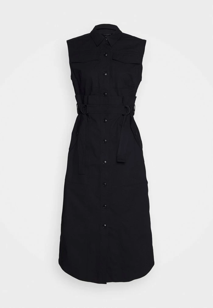 - Details: Belt included, inseam pockets, bust darts